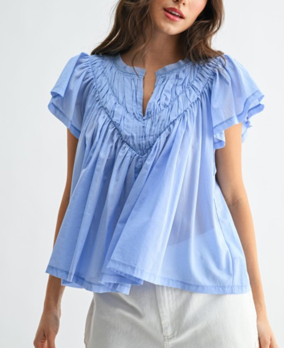 Phoebe Flutter Sleeve Blouse in Light Blue